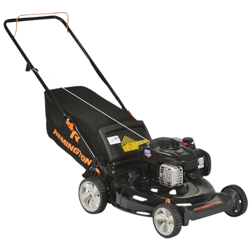 Enjoy more time outdoors doing the things you love and, less time on yard work, you can with this Remington gas powered lawn mower. The pushed lawn mower has a 140 cc Power More OHV engine for a great combination of power and lightweight performance. The 21-in cutting deck has a mulch rear discharge option offering a great cutting width during each pass and easy clean up. The 6-position dual-lever wheel adjusters ensure you can cut grass to your preferred specifications by easily adjusting the cutting height. Ideal for smaller properties, the gas-powered lawn mower features 7-in front wheels and 8-in back wheels that move smoothly over flatter terrain. The loop handle delivers great control and makes it comfortable to use.